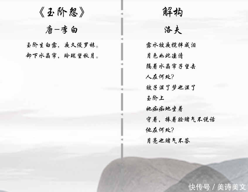 第一首,改写李白的《玉阶怨》,大家请看下图: